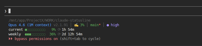 claude-statusline: Rich status line for Claude Code with rate limit countdown, context usage, git info. Install: