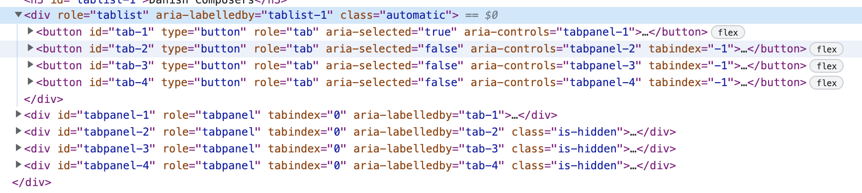 ]In this case the tabs and tab panels don't share the same ordering and as you pointed out, some might be missing correct attributes, etc. Any ideas?
