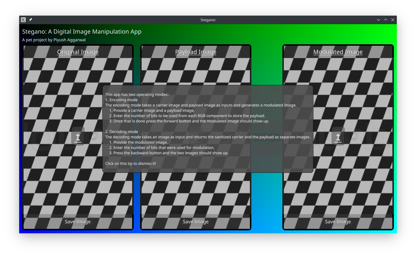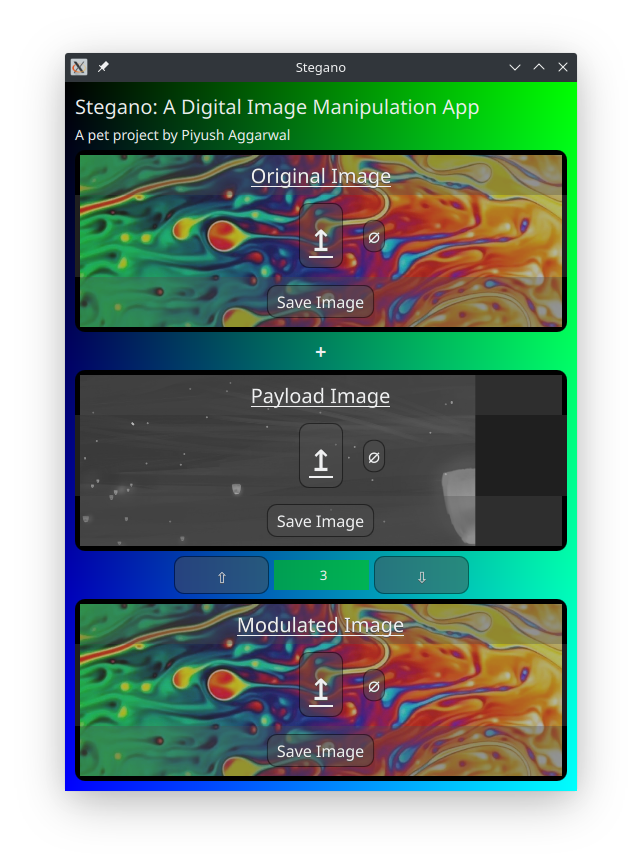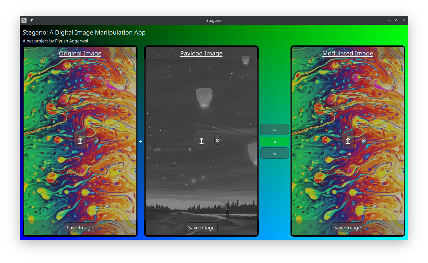 - In the steganography logic supplied with the project, the payload slice for the green component might seem to be complicating things a bit.