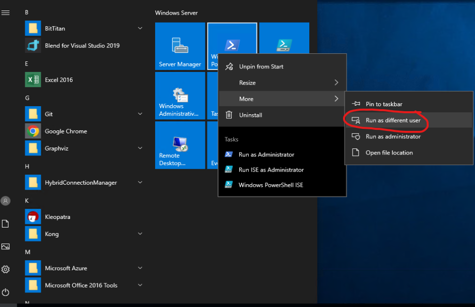 Start PowerShell ISE som Windows-servicekontoen som ble opprettet tidligere.